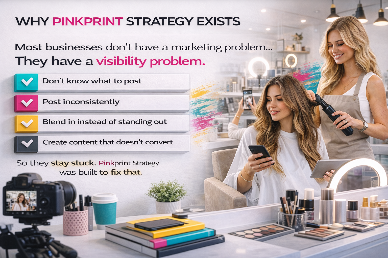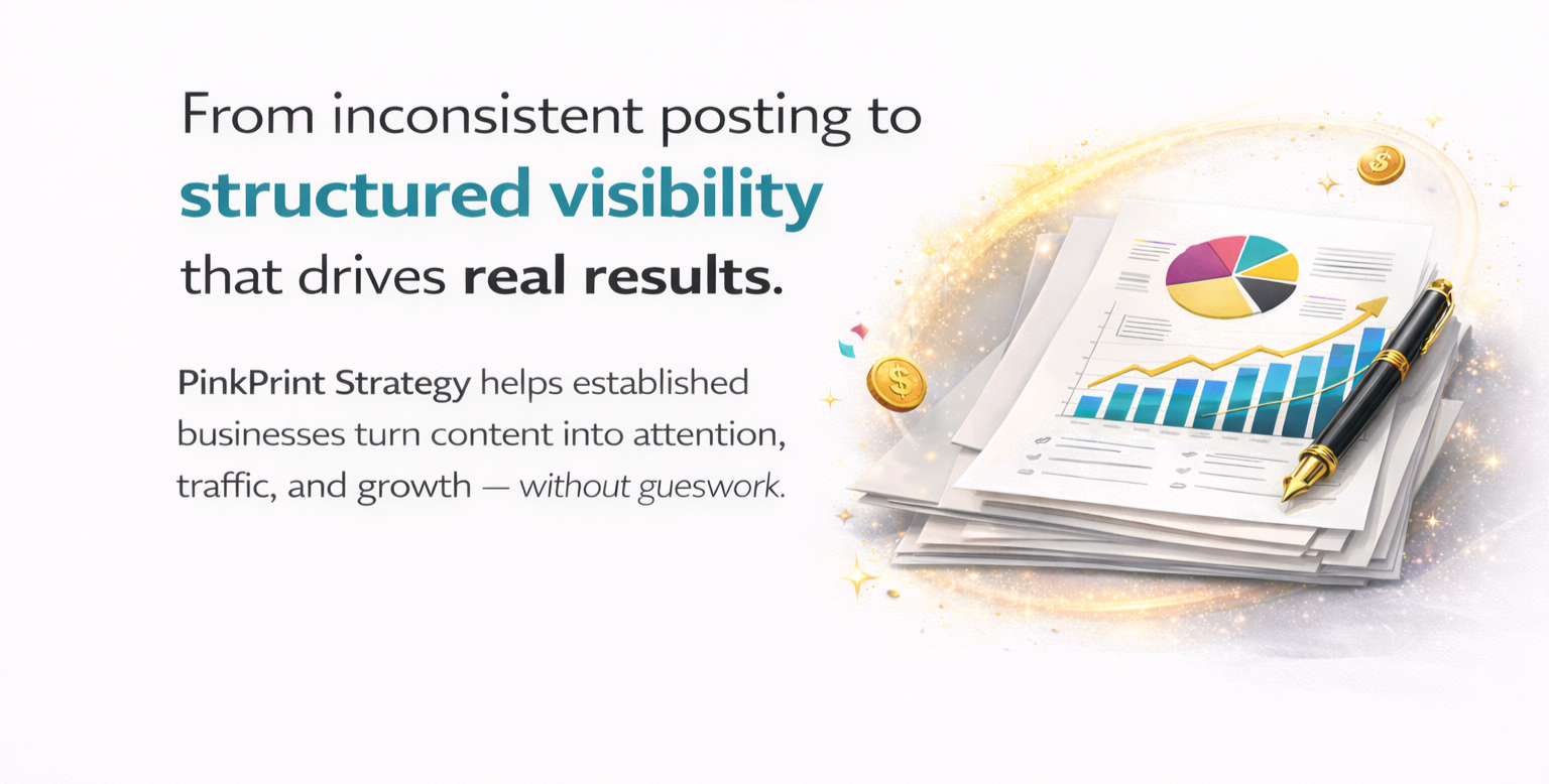 Pink Print Strategy is a visibility and execution system designed to help businesses grow without relying on guesswork and inconsistent posting or overpriced marketing agencies.