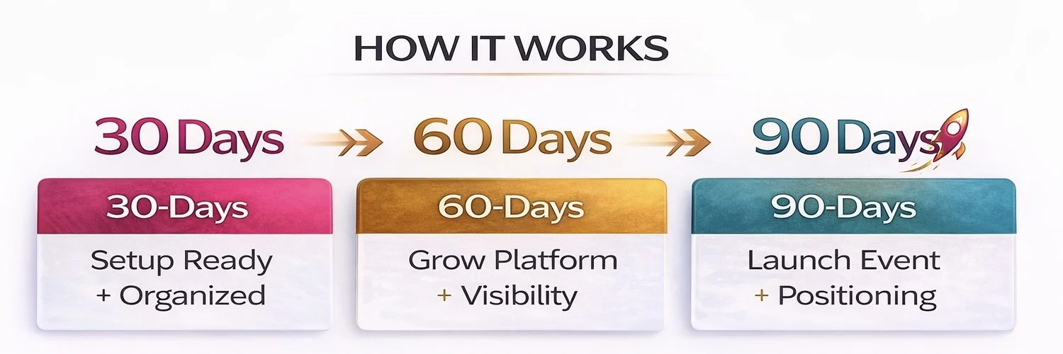 The 90-Day Execution Plan is a complete brand transformation and launch experience.